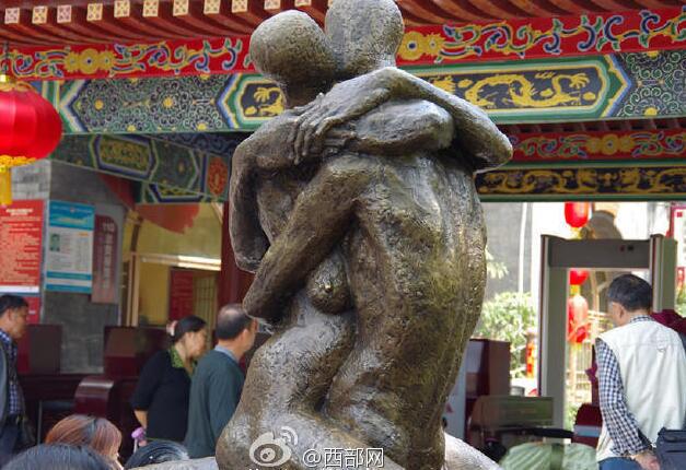 热吻裸体雕塑现西安公园 妈妈拉孩子绕开